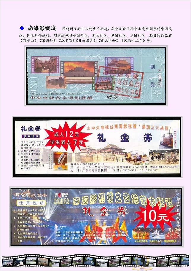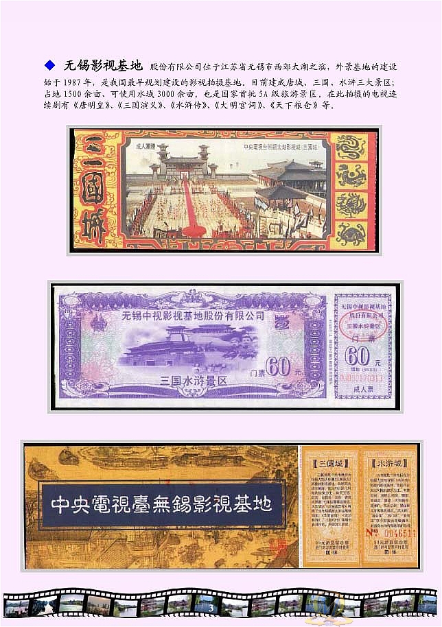 影视城门票组集,也很有特色。有的门票还是第一次见到,不错!