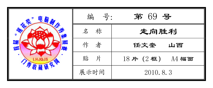 | 当前位置:【券集园地】-〖券集展示〗: “莲花奖”券展赛69:走向胜利 |
