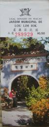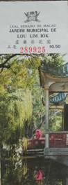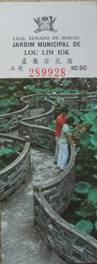 在北京报国寺文化市场上,收集到5张卢廉若花园门券。门券不大,宽5cm,高12.5cm,竖式。全面上部是中、葡文标注的公园名称、票价以及编号。票价五毫,也就是大陆人说的五毛或者五角。门券下部是卢廉若花园内的风景图片,5张各不相同。门券背面空白。估计这是一套门券,或者是一套中的5张。 卢廉若公园又称卢家花园或卢九花园,简称卢园(葡文:Jardim Lou Lim Iok ),位于澳门半岛的中部,东望洋山的北麓,罗利老马路与荷兰园马路的交界处,总面积1.78公顷。卢廉若公园景色如诗如画,俨然一幽雅、秀丽、恬静的江南风光,颇具苏州狮子林的格局,给人一种“小中见大”的感觉,是港澳地区唯一具有苏州园林风韵的公园,花园的历史价值已为澳门政府所评定。 园址原为龙田村的农田菜地,1870年(清同治九年)被富商卢华绍(卢九)购入作私人花园,并由其长子卢廉若请人设计,按苏州名园风格构筑园林,原名“娱园”,始建于1904年,1925年正式建成。1912年5月,孙中山应园主邀请下榻於园中的春草堂接见澳门中葡知名人士和革命人士。1973卢家花园由澳葡政府购入,经修葺后于1974年9月28日对大众开放,成为“卢廉若公园”。 从正门进入公园,是一座书有“屏山镜楼”四个大字的古色古香的圆形拱门,两旁是长满鲜花和翠竹的林荫小道,参天的榕树、成片的竹林、盛开的鲜花掩映着楼台亭阁、曲径回廊、池塘桥榭、流水飞瀑、假山怪石。园内景点分布得当,景色错落有致。假山堆成的奇峰怪石玲珑剔透、峥嵘百态,涓涓流水从假山顶部跌落,形成五叠瀑布,水流又注入假山脚下的小池塘,一位用巨石垒成的古代美女玉立池中,池边垂柳依依,池内水明如镜,白莲摇曳,成群的非洲鲫鱼游来游去,圆圆的荷叶和横跨其上呈弧状弯曲的九曲桥相映成趣。 全园以“春草堂”水榭厅为建筑主体,通过堂前水面周围的石径将各景点连成一体。春草堂虽是典型的中国建筑,但房屋的外墙却采用了葡萄牙人喜用的米黄色,并配以白色线条,12根廊柱也采取哥特式建筑形式,柱顶上修饰的是白色欧式花纹,而濒临水塘的平台上坐椅式栏栅则是中国人喜欢用的鲜艳的大红色,使人体会到这座中国建筑物上反映出来的中西方文化交融的痕迹。 卢廉若公园的景色在澳门众多公园中一枝独秀,1992年被评为澳门新八景之一。卢廉若公园在澳门回归后免费开放,已不使用门券,这5张门券成了收藏佳品。