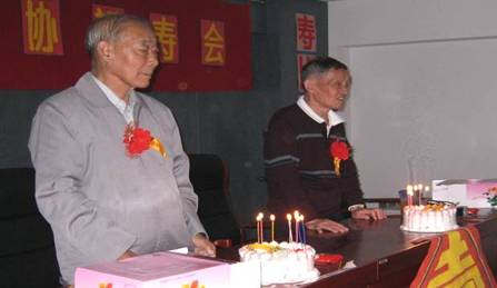 为王桂宝、金士英二位老寿星点燃生日蜡烛