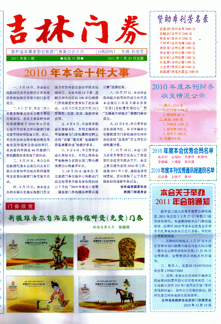 | 当前位置:【券刊大观】-〖券刊大观〗: 《吉林门券》总第51期 2011.1.20出版 |