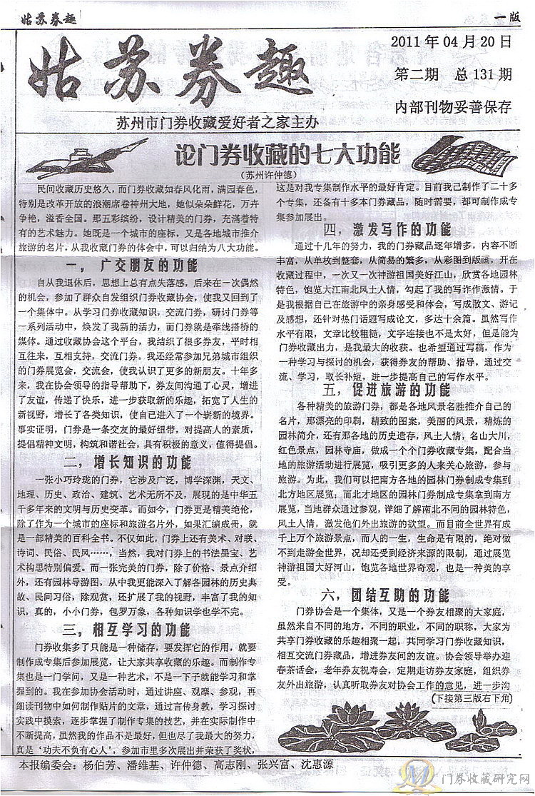 | 当前位置:【券刊大观】-〖券刊大观〗: 《姑苏券趣》总第131期 2011.4.20出版 |