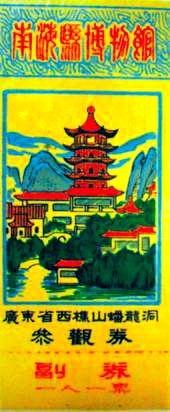 西樵山蟠龙洞参观券 经过几十年的努力 ,吴元钊收藏水平也得到很大的提高。在广州举行的“省第二届门票、站台票展览”上,吴元钊以自己收藏的粤剧门票,“戏桥”、节目单等,制作了粤剧藏品专集《南国红豆》参展。专集从“南国红豆”的由来、粤剧的历史、艺术、唱腔、音乐、服装、名人等到粤剧的继承与发展,分类很有条理,俨然是一部粤剧发展史,受到了人们的赞赏,获得了二等奖。接着,专集又在第14届全国旅游门券展览获得最佳专题奖(一等奖)。吴元钊表示,收藏佛山门券,已成为他的一种精神寄托。如果条件允许,他会举办一个以佛山门票为内容的展览,名字就叫作“佛山是我的家”。 (文/图 《佛山日报》记者 陈铭培)