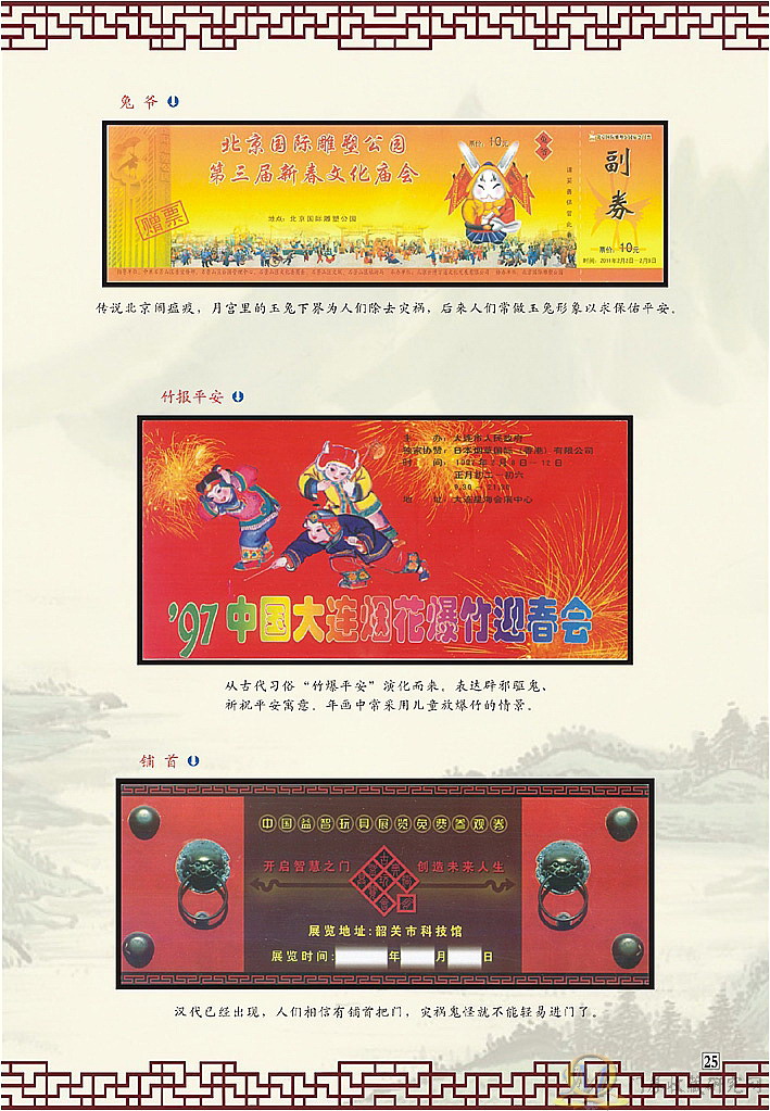 不愧为设计大师,页面清新明亮,票券典雅奇特,喜庆色彩浓厚,民间知识渊博,拜读了!