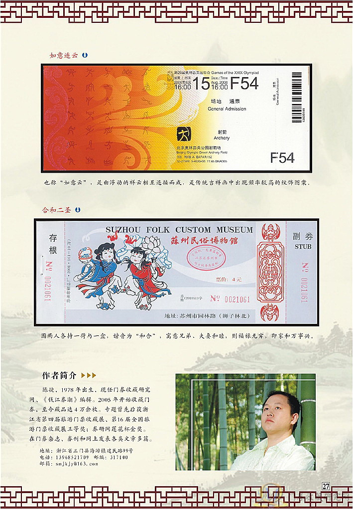 靓丽的门券,厚重的文化底蕴,赏心悦目的好专,!学习欣赏了!