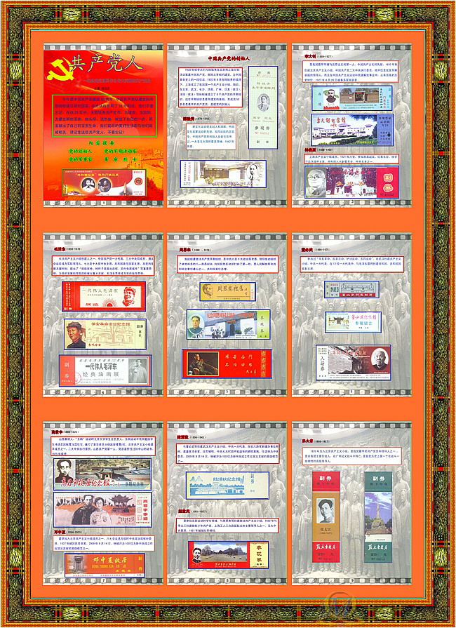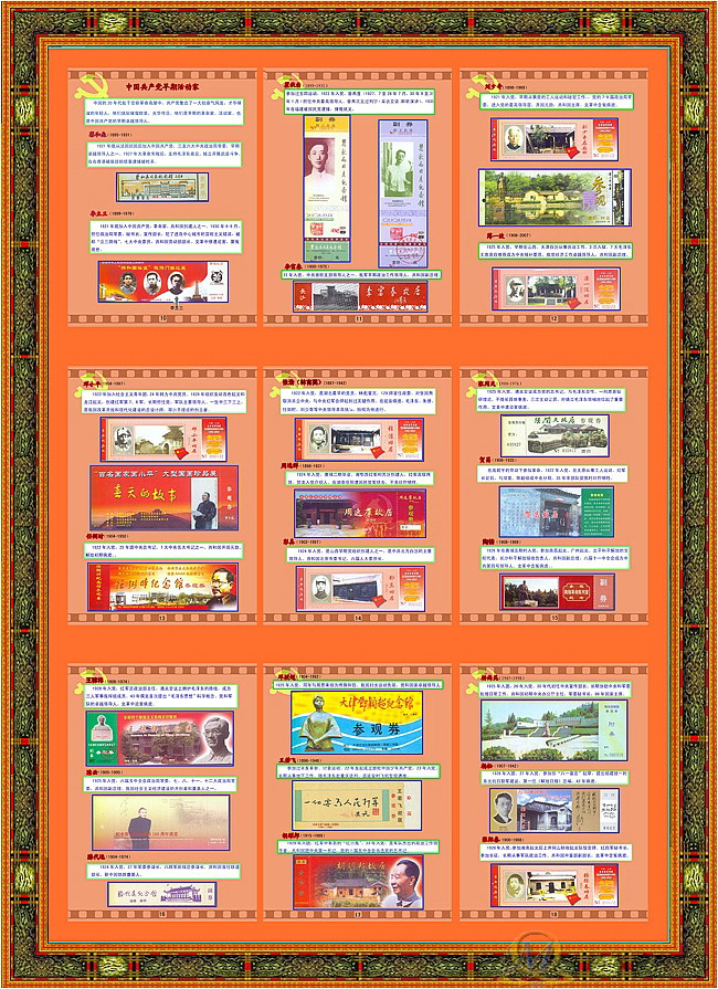 共产党人好传统,追求真理为人民,建党立国奠基业,舍生忘死献忠诚,券品丰富资料详,生平事迹细考证,红色人物宏篇叙,结构均衡四框分!