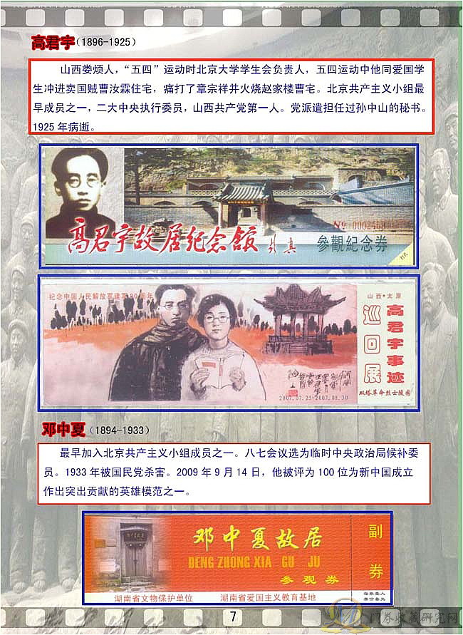 另外,第七页的邓中夏介绍中,您在邓中夏的名字后面写的1894-1933是对的,但是在下面却写成了1937年。