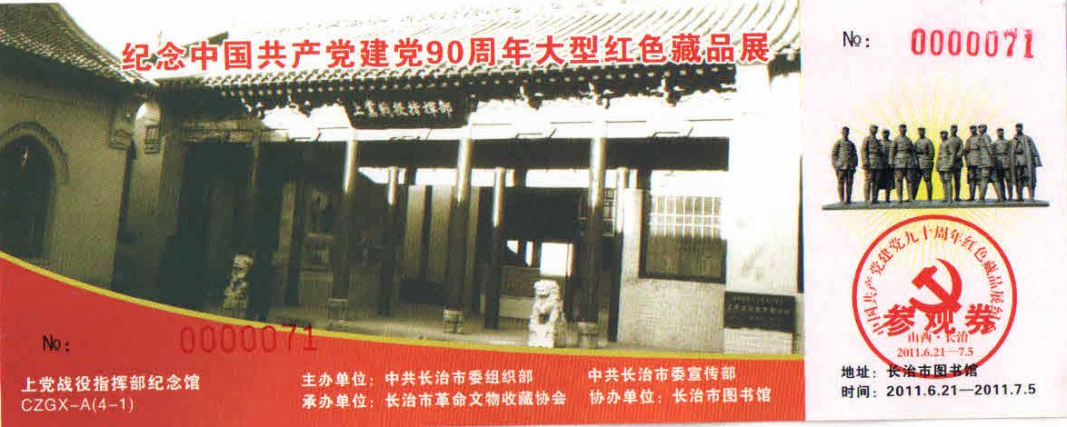 | 当前位置:【藏券研究】-〖券海拾贝〗: 长治红色收藏展请柬及纪念券欣赏 |