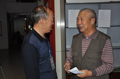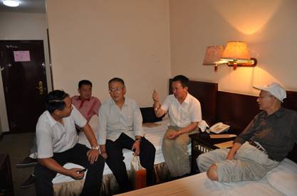 长治市革命文物收藏协会会长李志文(右二) 与山西券协领导一起探讨办展经验