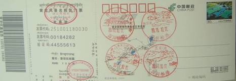门票背面;花几元钱盖了黄龙景点纪念章,他们给寄,我自带回。