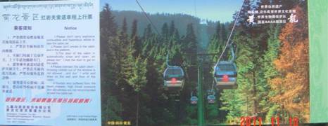 黄龙索道 我们上山坐索道,下山沿栈道步行,拍照美景,据说这是最佳方案。中午自带午餐,游览约6个小时,10余公里。