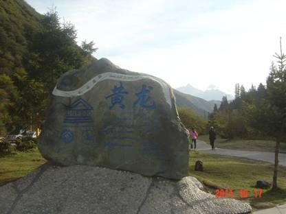 第五天 川主寺——黄龙 (10月17日) 早8点,我们从川主寺镇出发,行车大约两个小时,来到了这次旅游的重点“黄龙风景区”。导游购票,发给大家,两张票连在一起,进门电子检票,但参观完后,其他团员导游都把票根收走了,唯独我网开一面,留下“全身”。