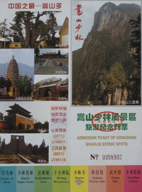 观星台早期使用门劵为纸劵后为塑料劵。近期使用门劵为与少林寺一起的套劵。