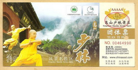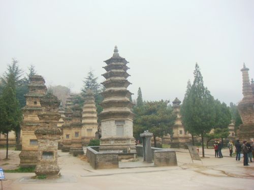 河南旅游收获之二 杨永军 11.17日下午离开玄奘寺后,继续向嵩山少林寺进发,一路突遇大雾道路难行,傍晚终于到达少林寺,18日上午在店主的带领下早早的进入了景区,首先参观了少林寺景区的孝道碑景点,然后坐上索道,到少室山少林寺老寺二祖庵观光,据说这是少林寺的发源地,遗憾的是大雾天气只能看寺庙,却不能观少室山风景。返回后观光了少林寺的塔林后最后进入少林寺。由于我们都是免费的所以没弄到票,最后还是在店主的帮之下找到了几枚票。