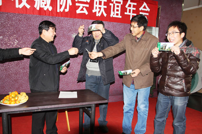 常甘生向会员展示文物局赠送的精美贺年卡和封