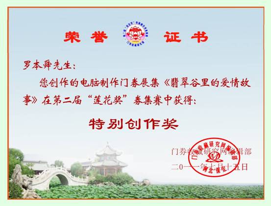 二、在第二届“莲花奖”券集赛中创作的四篇作品分获银奖、银奖、铜奖、特别创作奖、特别素材奖。