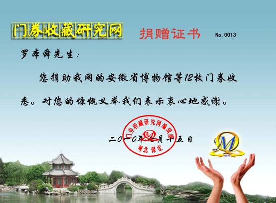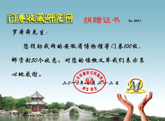 四、感谢罗本舜会长对门券收藏研究网的悉心呵护与无私支持!