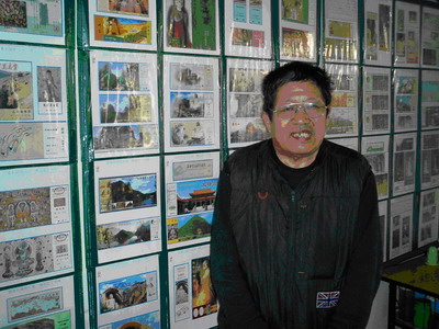 2012年3月18日,这天是周日,由于昨夜下了一场春雪,今天外边的空气显得格外清新。在滨海新区华云园里一间普通的民居家中,今天是格外的热闹,滨海新区的券友和社区的人们,络绎不绝地来到这里,由该社区居民、滨海新区门券协会资深会员石学忠老师的家庭门券展,将在这里与大家见面。谭震龙、常岗、杨峰等数位券友也一同参展。数以千张五颜六色的旅游门券以展板形式挂满了整个大厅、走廊的墙面。特别是石老师的“沿着石窟长廊,佛走进中国”这个专题,从五个阶段向我们揭示了石窟的历史。让我们每一位参观者大为赞叹,他七下甘肃,几乎走遍甘肃的每个角落,这些罕见的门券,正是石老师多年来对门票那种持之以恒的最好见证。