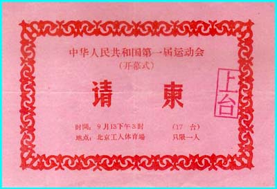 呵呵,第一届全运会的请柬太难得。明年在沈阳将举办第12届全运会。