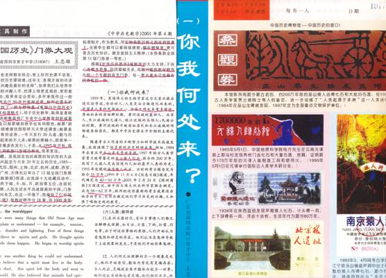 雨 人:您从92年开始,首创系统运用邮票辅助历史教学,成效卓著。现在又开始运用门券辅助历史教学,当初您是怎么想到用邮票和门券辅助教学的?用门券辅助教学有哪些好处?有想过今后在全国推广普及吗? 王忠雄:我从80年代末开始利用历史题材的邮票辅助历史教学,编了一部专题邮集《集邮与<中国历史>》近200张贴片,作为教具用于课堂教学,受到学生欢迎。但是也有局限性:邮票身价太高贵,天天带进课堂,使用实物投影仪,容易受损。后来发现门票品种更多,票幅大,图案漂亮,文字资料更丰富。1995年国庆节正式集券,并逐步引入课堂。挺疯的,收效也很大。1996年就编出《上古—秦史话》参加了西安的第9届全国展,虽然没得奖,但同时寄去的《充分发挥门券的教育功能》却被第3届全国旅游门券收藏理论研讨会评为“优秀论文”。2000年4月第一次搞个展,主要内容就是《<中国历史>门券大观》,按照教材分18章,1000张贴片。 上课时,使用彩色实物投影仪把门票投放到银幕上,可以导入新课,也可以加深学生对课文的理解。单元复习、期末复习时,贴在走廊橱窗上,学生会更系统地学习。学生欢迎,市、区教育局也多次推广表彰。全国发行的《中学历史教学》杂志多次刊登我的有关门券文章,并连续5年以彩色版连载《<中国历史>门券大观》。