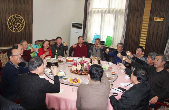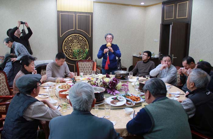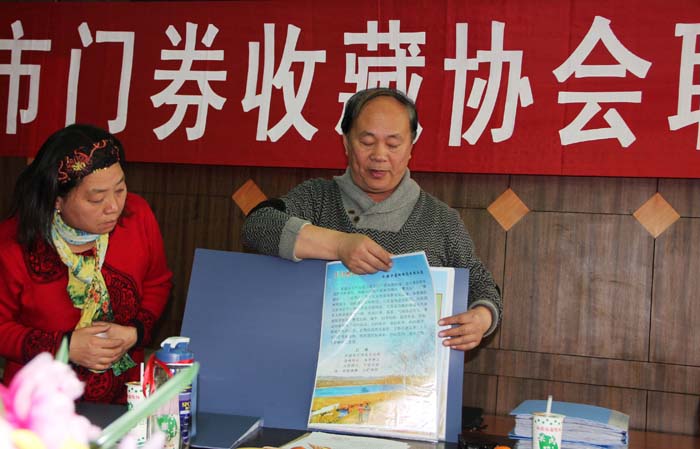河北承德门券收藏协会 召开联谊年会暨第二次会员大会(下) 三、交流联谊会。 按着议程会员大会结束后,随即召开了交流联谊会。首先由张子玉秘书长开始门券专题制作讲座。他从专题确定、选票、塑封、贴片等方面讲解了自己的制作方法、心得体会。展示了去年制作《纪念辛亥革命100周年》专题的作品。让新老会员从感性到理性得到了启发。接着由理事郑航宇将自己完成的十七届命题参展作品向券友进行了展示,希望听取大家意见建议,做进一步的完善提高。券友们踊跃观看专题作品,问这问那,探讨交流。这次讲座、展示时间不长,在一定程度上达到了交流和提高会员专题集券技能和水平的目的。 接着进入交流赠送票卡环节,券友们有备而来,各自拿出了自己准备的卡、券相赠送。会员间的大度,真诚让人感动。首先杨帆会长代表门券协会向杜江会长赠送了盖满收藏印章的贺年卡。尔后石德常理事将自己精心准备,手工制作的蛇年贺卡及生肖书签送到了券友手里。于长泅理事因公务出差未到会,但他把自己亲手书写的贺年卡及特制的第二杦生肖纪念券,委托张子玉秘书长发给了大家。常甘生理事为券友们准备了印有承德风光的最新邮资明信片,八杦一套的精美明信片让券友喜出望外。会议室里大家一个个陆续拿出自己的礼品互送,交换,新老会员收获多多,会议室内热情洋溢,场面热闹而温馨。 临近中午,大家合影留念,到招待所举行了迎春联谊酒会。席间会员们有备而来,各显才艺,表演了吹葫芦絲、唱京剧、诗郎诵等节目。会员们欢聚一堂,在欢乐的气氛和祝福声中增进了交流与友情。刘运峰作《迎新春》诗一首,表达心境。 银蛇飞舞迎新春, 传承文明聚券人, 情投意合来相会, 门券活动年年新。 这次联谊年会暨第二次会员大会内容丰富,会议开的热烈欢快,紧张有序。圆满完成了即定议程。相信在省协会指导下,兄弟协会的支持下,在广大会员的努力下,在新一届理事会的领导下,承德门券收藏协会一定会开创门券收藏工作新局面。