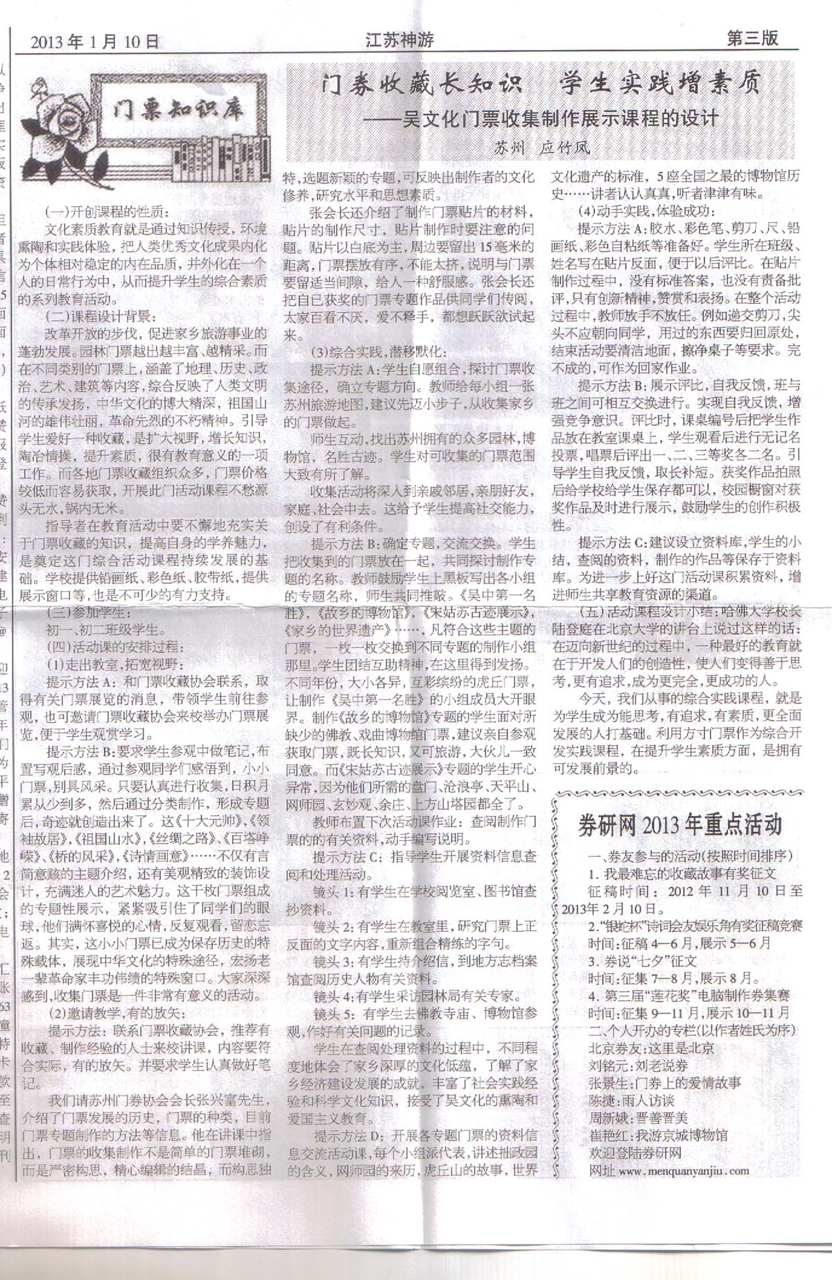 | 当前位置:【券刊大观】-〖券刊大观〗: 《江苏神游》总第138期 2013.1.10出版 |