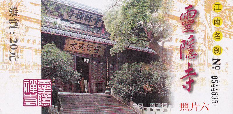 门券收藏,不在于获得,也不在于其精、稀、成套程度,而在于门券蕴藏的丰富文化。我每逢获得门券后,就从方方面面精心收集其门券的文化内涵,然后从中整理、归纳出具有知识性,趣味的故事。内蒙古的呼和浩特大召寺“九边第一泉”、河北省的山海关“天下第一关”和浙江省的杭州“灵隐寺”三个景点,是我最难忘的收藏门券的故事,极具代表性,今儿讲给朋友们听。 呼和浩特大召寺“九边第一泉”(照片一、二)。大昭寺是内蒙古呼和浩特市的一座藏传佛教寺院,蒙语俗称“伊克召”,意为“大寺庙”,其中“召”为藏语寺庙之意。汉名原为“弘慈寺”,后改为“无量寺”,因内供奉一座银佛,又称“银佛寺”。九边第一泉,系指大召寺前的玉泉井而言。在大召寺山门檐下,挂有一块横匾,上刻行书字体“九边第一泉”,遒劲俊逸,顶端还有“古无量寺”字样,很有欣赏价值。何谓九边,古代北方著名的辽东、大同、延绥、薊州、宁夏、甘肃等九边镇,九边第一泉即指归化城(今呼和浩特)之玉泉井,因有“御马刨泉”的传说故事,故称“御泉”,后不断演变为“玉泉”。“九边第一泉”匾额呈长方形,长约3.3米,宽1米,相传系清代山西榆次人王用祯(一曰王国祯)书写。王用祯系一座大盛魁商号的账房先生,写得一手好字,而从不用笔书写。“九边第一泉”匾额即用棍子绑上棉花球,饱蘸浓墨书写而成,笔势飞动有力,俗称“棉书”,具有很高的审美价值。 山海关“天下第一关”(照片三、四)。山海关位于河北省秦皇岛市东北15公里处,始建于明洪武14年,称天下第一关,又叫镇东楼,俗称箭楼。坐东朝西,传统砖木结构,高13.7米,分上下两层,城楼上悬挂一块“天下第一关”巨匾,长5.8米,宽1.55米。其中的一个“一”字就长1.09米,繁体字关字右边的一竖就长1.45米。 此匾最大特点,不书年、月,不留姓名,何人书写,众说纷纭,有人说是明朝宰相严嵩、有人说是余一元、谭从简,也有人说是晋代大书家王羲之。而当地人则说是肖显所书。根据专家考证,“天下第一关”匾额并非一块,明进士当朝宰相严嵩确写过“天下第一关”匾额,从时间、身份、书法水准上完全吻合。但这块匾额,相传,1933年,日本军国主义攻进山海关后,“天下第一关”匾额成了日本军国主义的胜利品,拆下运往东京。有日本友人上世纪30年代拍摄的“天下第一关”照片来看,那块匾额上的“第”字为“竹”字头,而现在悬挂的“天下第一关”匾额上的“第”字则为“草”字头(古代竹头第和草头第通用)。专家考证现挂匾额为山海关人肖显所书。肖显,字文明,号履庵,明代成化八年进士。当地民间相传,有肖显题匾的传说故事活灵活现。肖显奉明朝皇帝朱见深圣旨书写“天下第一关”匾额,时间紧,就大笔一挥而就,急忙将匾挂上城楼,一看,“下”字少了一点,怎么办?正当围观议论纷纷之际,只见肖显抓起一块抹布,揉成一团,饱蘸墨汁,往上奋力一抛,恰好打在点儿上,这下匾额就更显得气势不凡了。只是夸张与浪漫而已。 杭州“灵隐寺”(照片五、六)。灵隐寺是中国佛教著名寺院,又名云林寺。相传,1600年前,印度僧人慧理来杭州,看到这里山峰奇秀,以为是“仙灵所隐”,就在此建寺,取名灵隐寺。济公,是法名,原名李心远,就在此寺剃度出家,成了驰名的和尚。 清康熙皇帝南巡时,登灵隐寺后山北高峰顶览胜后,应老方丈请求,即兴为灵隐寺题匾,因心情高兴,大笔一挥却把灵的雨字头写大了,繁体灵字上面是“雨”字头,中间横排三个“口”字,最下面是个“巫”字,差点下不来台。身边的大学士高士奇(号江村)在手上写下了“雲林”二字,装洋研墨,呈给康熙皇帝看,康熙领悟,大笔接着一挥,写下了“云林禅寺”四个字。众僧人都大眼瞪小眼,皇上怎么把寺名写错了,这时大学士高士奇朝着大家说:“皇帝赐名,还不谢主龙恩”。其实康熙没那么昏庸无能,原来在后山观赏时,看到山下云林漠漠,整座寺宇笼罩在一片淡淡的晨雾之中,好一派幽静!是有意把“灵隐”改写成“云林”,以表皇帝的“唯我独尊”,现在大殿前的那块“云林禅寺”之匾就是康熙亲笔。虽然皇帝赐名,匾额挂了300多年,百姓不买他的帐,在人们心目中,灵隐寺的传说,体现了这块风水宝地拥有深厚的历史文化底蕴,仍称呼为“灵隐寺”。