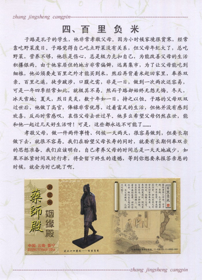 中华民族的孝文化博厚悠远,景生撰写美文配券,诠释了我国的传统美德,拜读后受益匪浅。