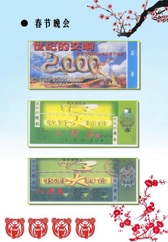 普通的门票,营造了欢乐的气氛,体现出浓浓的年味.