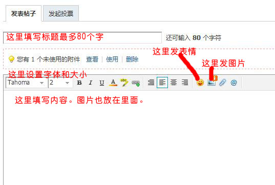 1.注册方法: 见帖子:【券友茶馆】论坛即将替换新版本 如何发帖 注意:新论坛发帖、发帖必须写字(至少一个,或者一个表情),只发图片不写文字是不可以的。 打开论坛,打开栏目(比如:佳券展示),点击“发帖”,在光标闪动处(后面写着“还可输入 80 个字符”)填写题目。下面大框(写着字体,大小,B,I,U的斜面)中发照片和文字。请调整你习惯的字体和文字大小(默认的字号偏小)。内容框中必须有一个字以上的文字或表情。