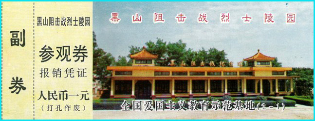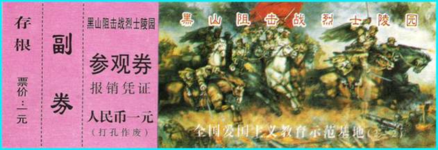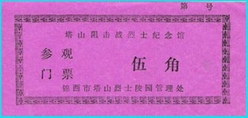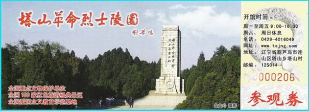 您看过电影《黑山阻击战》吧,门券上的画面会把您带回到“全歼国民党军第九兵团10 万余人,俘东北“剿总”中将副总司令兼第九兵团司令廖耀湘等多名高级将领”的那一幕幕。 一枚枚普通的烈士陵园门券,珍藏着多少扣人心弦的故事,先烈们临危不惧、大义凛然、不屈不挠、视死如归的革命英雄主义气概,为后人永远缅怀和敬仰。 一枚陵园门券就是一个故事、就是一部久历史长篇小说,欣赏她,会教人沉思、催人奋进。研藏她,能激励我们继承革命传统,谱写多彩的人生! 写在后面:限于资料、藏识、时间等,本文仅是对“烈士陵园”门券的一个粗浅认识与资料堆积。只期望对您藏研门券有点滴启迪。