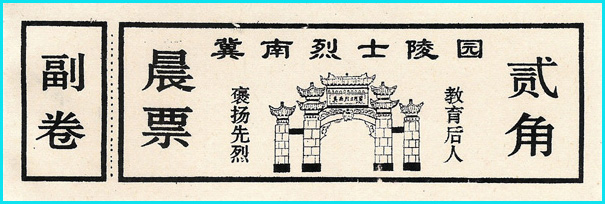 二、烈士陵园建筑的特点。 烈士陵园是以革命先烈陵墓为主的园林。具有一定规模的烈士陵园其建筑物主要包括牌楼、纪念碑、纪念馆(堂)、雕塑等。这些在烈士陵园门券上都有体现。 1、牌楼。较大规模的烈士陵园在入门处都建有牌楼,以增加陵园建筑的气势与纪念氛围。