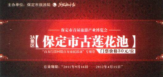 小资料:2011年、2012年“百万门票回馈市民活动”专用票式样: