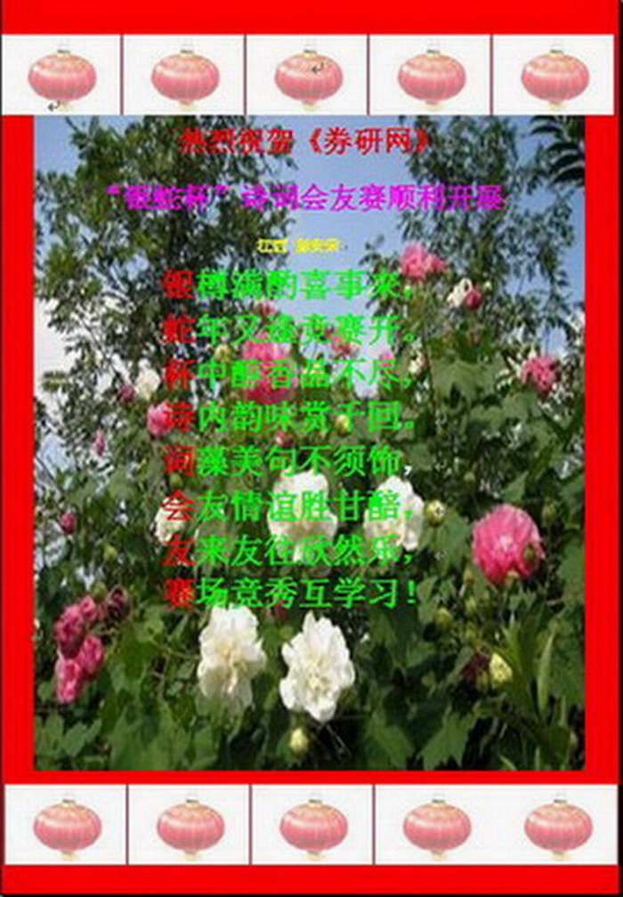| 当前位置:【诗词乐园】-〖诗词会友〗: LYHY0058热烈祝贺《券研网》“银蛇杯”诗词会友赛顺利开展 |