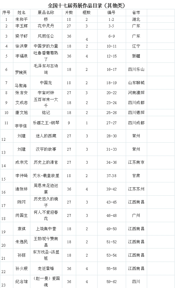 | 当前位置:【券坛史料】-〖展览交流〗: 届展资源共享—本届感怀(08)券展作品目录(其他类) |