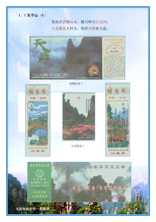 丰富的门票将武陵源展示的美不胜收,欣赏、学习了。